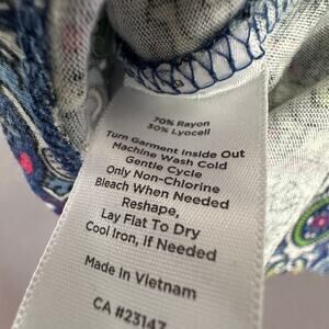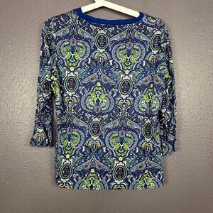 Talbots Paisley Henley Top Size Large Petite Blue 3/4 Sleeve V Neck