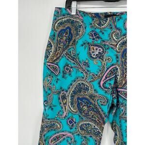 Talbots Paisley Pants 18WP Petite Plus Turquoise Blue Crop Stretch Cotton Capri