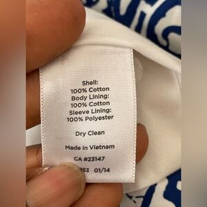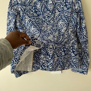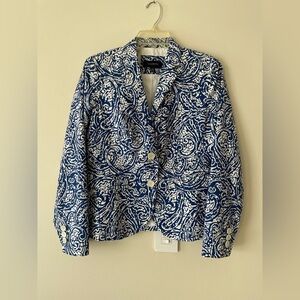 Talbots Cobalt Blue White Batik Paisley Print Two-Button Vintage Boxy Blazer Sz4