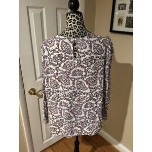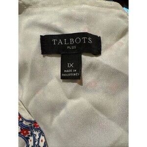Talbots Paisley Printed Tiered Ruffle Front Blouse Size 1X Red White Blue Plus