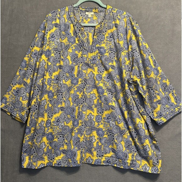 Talbots Paisley Printed Tunic Top Plus Size 3X Yellow Blue Office Career Resort