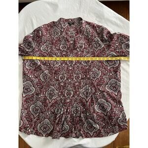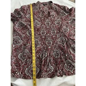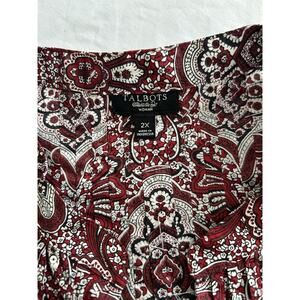 Talbots Paisley Sequin Pin Tuck Blouse Womens Size 2X Red Black Classic Preppy