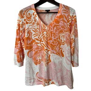 Talbots Paisley Slub Cotton V-Neck Floral Sweater Size Large