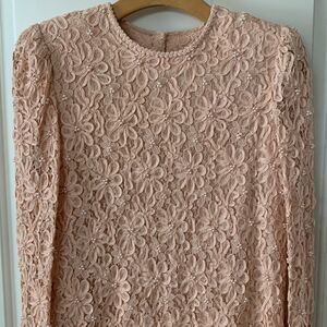 Talbots Pale Pink Lace Beaded 2 piece set. Maxi Dress Suit Set 12