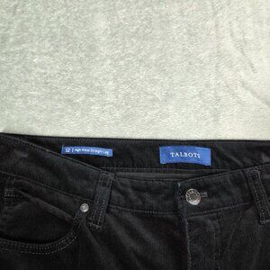 Talbots Pants 12 Black Corduroy Stretch High Waist Straight Leg Preppy Trousers