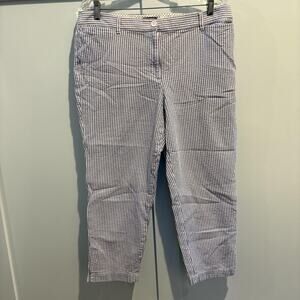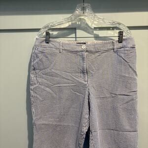 Talbots Pants Womens 12 Blue White Perfect Crop Seersucker Striped Ankle Capri