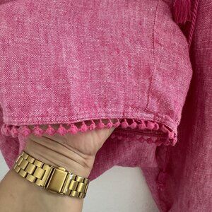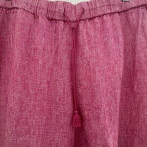 Talbots Pants Womens 12 Pink Linen Cropped Tassel Drawstring Resort Boho Trim