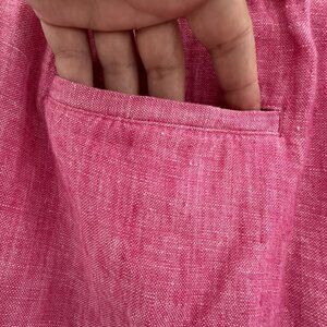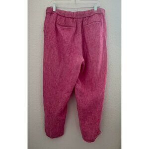 Talbots Pants Womens 12 Pink Linen Cropped Tassel Drawstring Pockets Boho Trim