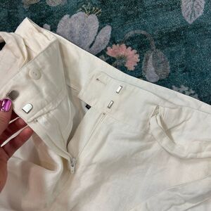 Talbots Pants Womens 14 Petite White Pure Irish Linen Wide Leg Tie Front Cropped trousers lined