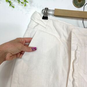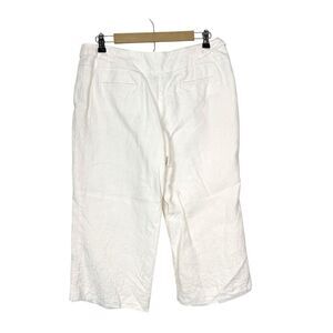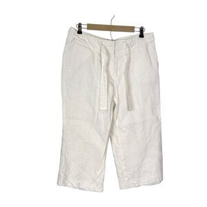 Talbots Pants Womens 14 Petite White Irish Linen Wide Leg Tie Cropped Culottes