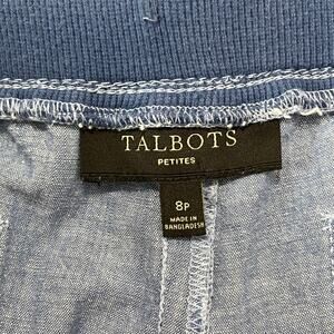 Talbots Pants Womens 8 Petite Blue Pull On High Waist Drawstring Business Casual