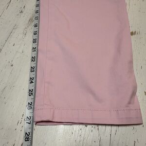The product is a pair of Talbots women's pants in size 8, featuring a primrose pink color and a relaxed chino style with a tapered leg. Made from a blend of spandex and cotton, these pants have stretch pockets for added convenience. The pants are machine washable and suitable for various occasions such as travel, casual outings, and workwear. With a mid-rise and flat front design, these pants provide a comfortable fit and are perfect for summer, fall, and spring seasons.