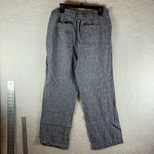 Talbots Pants Women's 8 White Blue Striped Wide Leg Drawstring 100% Linen 7808