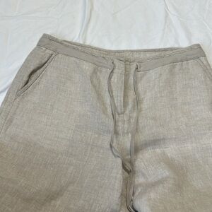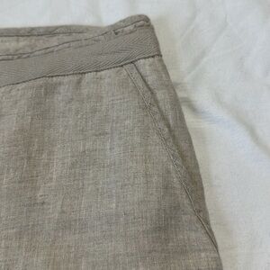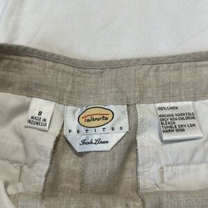 Talbots Pants Womens 8P Pure Irish Linen Mid Rise Straight Capri Pockets Tan