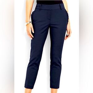 Talbots Pants Women’s Navy Blue Ruffle Pocket Ankle Straight Leg Career Work 10