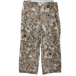 Talbots Pants Womens Size 12 Brown Black Floral Wide Leg Slacks Casual Cotton