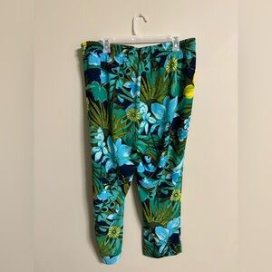 Talbots Pants Womens Size 1X Blue Green Floral Drawstring Waist Pull On Tropical