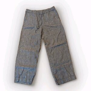 Talbots Pants Womens Size 8 Blue White Stripes Linen Pockets Drawstring