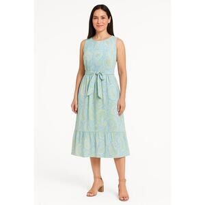 Talbots Pastel Paisley Pattern Tie Waist Sleeveless Midi Dress Petite 10