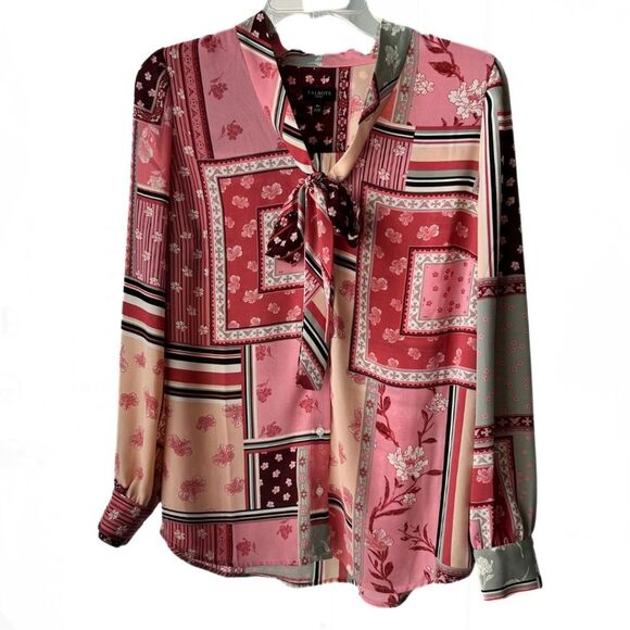 Talbots Patchwork Print Button Down Pink Cotton Long Sleeve Women’s Sz MP