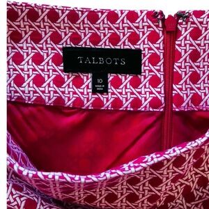 Talbots patterned red and white pencil skirt. High quality fabric, double lined with zipper closure in the back. Knee length and thick fabric. In like new condition.