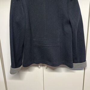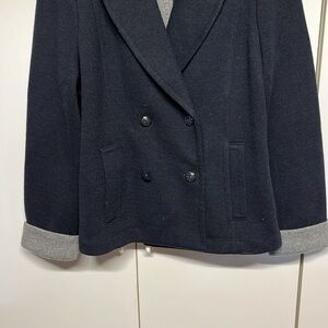 Great fall winter short Black Coat , double breasted button closure, gray interior.