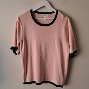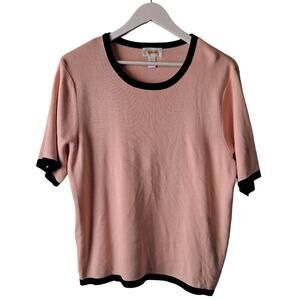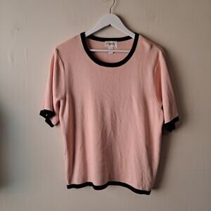 Talbots Peach & Black Colorblock Knit Crewneck Short Sleeve Sweater - Size L