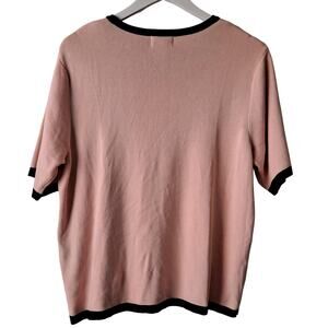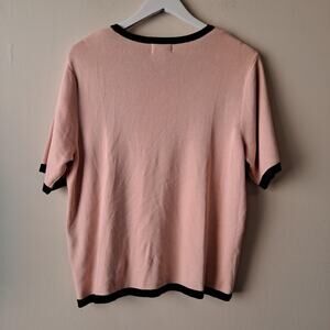 Talbots Peach & Black Color Block Knit Crewneck Short Sleeve Sweater - Size L
