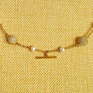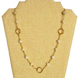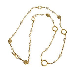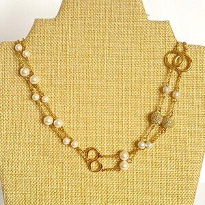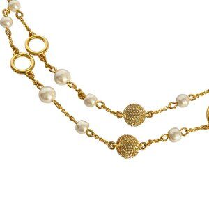 Elevate your style with the Talbots Faux Pearls, Rhinestone Balls and Rings Elegant Gold Tone Necklace. A 36in length allows for versatile wear either long or doubled over.