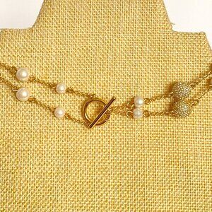 Talbots Pearls Rhinestone Balls Elegant Gold Tone Long or Double Necklace 36in