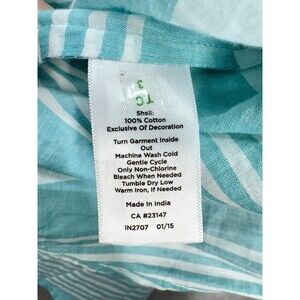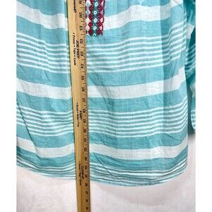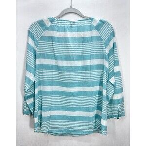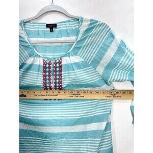 Talbots Peasant Beaded Top Womens Petite Medium / MP Blue Stripe Long Sleeve Keyhole Lightweight. Excellent pre-owned condition with no flaws found. Measurements in photos. Fast shipping!