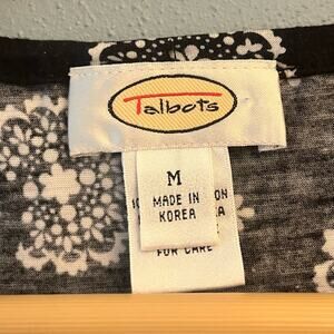 Talbots black and white peasant style t-shirt. Gathered hem and balloon sleeves. Size M