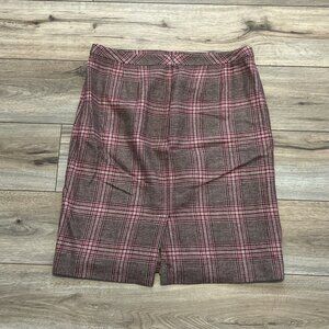 Talbots Pencil Skirt SZ 12 Wool Blend Tartan Plaid Brown Pink Lined Back Zip