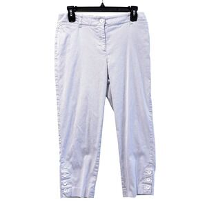 Talbots Perfect Crop Pants Womens 4P Blue White Striped Button Hem Capri