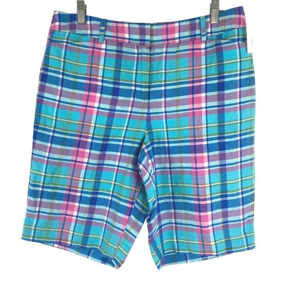Talbots Perfect Shorts Women's Size 8 Linen Cotton Plaid Multicolor NWT SS-1302