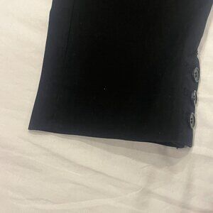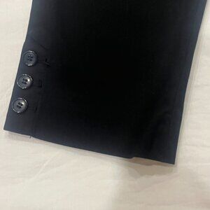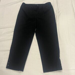 Classic black “Perfect Skimmer” pants from Talbots, Petite size 2P. Features a sleek straight leg, button and zip front closure, belt loops, back slit pockets, and button detail at the hem. A versatile wardrobe staple that works for office, casual, or evening wear.