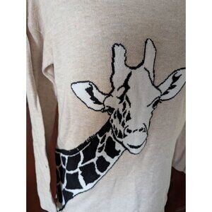 Talbots Petite Beige Sweater With Giraffe Graphic Long Sleeve Womens P