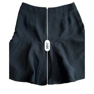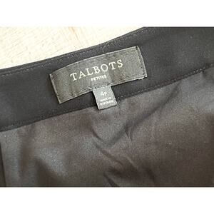 Talbot's Petite Black Scalloped Tulip Flare Skirt 4P Preppy Retro Flare. This retro-chic skirt has beautiful delicate lines with a vintage flare which is fully lined. 100% Polyester. Dry clean recommended for the longevity of the garment. No known rips, tears, holes, stains or defects.