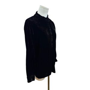 Talbots Petite Black Velvet Long-Sleeve Blouse With Ruffled Collar Sz PL - New
