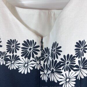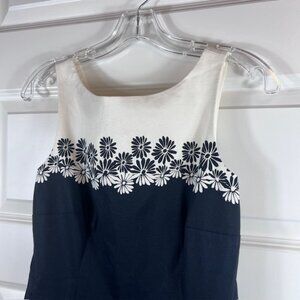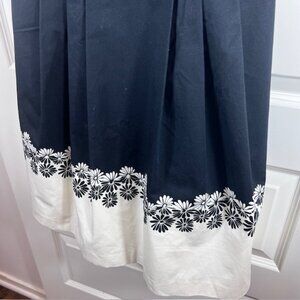 This Talbots Petite fit & flare dress offers timeless elegance with a playful twist. Crafted from a structured cotton blend, it features a black and white colorblock design with charming embroidered daisy floral detailing at the neckline and hem. The pleated skirt adds flattering volume while maintaining a classic silhouette, perfect for work events, brunches, or spring occasions.