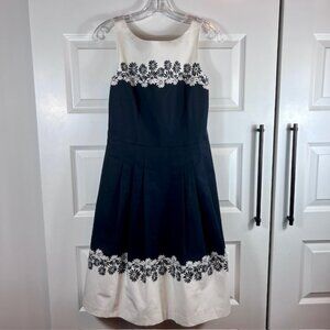 Talbots Petite Black White Daisy Embroidered Fit & Flare Dress 4P NWT
