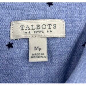 Talbots Petite Blue Button-Up Shirt Star Print Long Sleeve Collared Women's MP