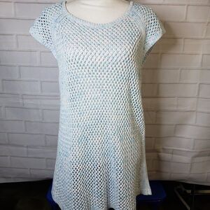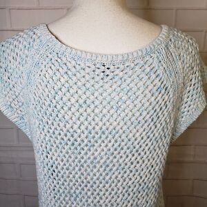Talbots Petite Blue Crochet Tunic Top Boat Neck Cap Sleeve womens XL XLP Shirt