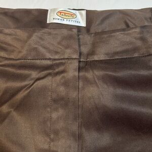 These Talbots capris feature a rich brown hue and are crafted from a smooth silk and cotton blend, offering a comfortable fit. Hidden elastic add to the comfort. The natural creases in the fabric add a touch of relaxed elegance, making them a versatile addition to your wardrobe.