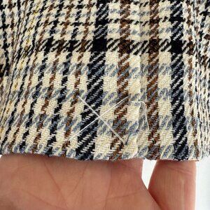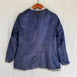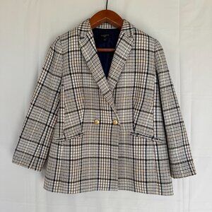 Talbots Petite Brown Ivory Blue Plaid Gold Double Breasted Blazer Size 16 Petite