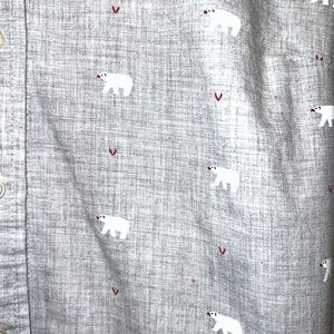 This charming Talbots Petite button-down shirt features a whimsical white bear and red heart print on a soft gray background — a perfect blend of classic and playful. Made from 100% cotton, it's breathable, comfy, and easy to care for.