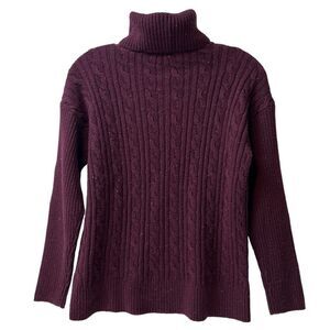 Talbots Petite Cable Knit Pima Cotton Turtleneck Sweater Burgundy Size Mp