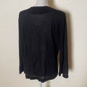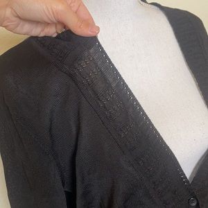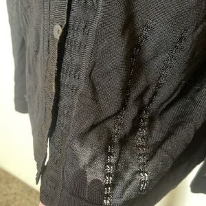 Thin and very cool throw over cardigan. Very nice field to it size XL in petite. I am a size medium/large and it fits me very nicely. Has loose sleeves. Smoke-free home. Next day shipping except weekends. Everything is washed prior to shipping 🙂