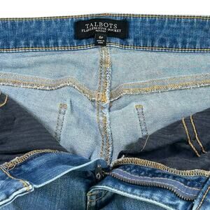 Talbots Petite Cropped Jeans Size 6P Blue Nautical Ankle Button Stone Wash Denim