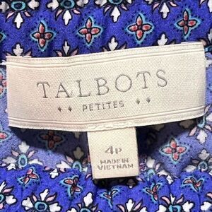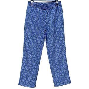 Talbots Petite Flat Front Ankle Pants Wide Leg Blue White Medallion Size 4P